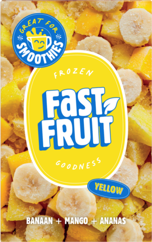 - Doe de 75 g Fast Fruit Banaan, Mango, Ananas mix in de blender samen met de 100 ml havermelk. Mix het geheel ongeveer 1 minuut totdat het een mooie gladde massa wordt.